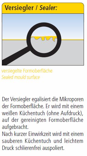 Er versiegelt Metall-,Holz-und Kunstharzformen, sowie sehr poröser und Saugfähiger Werkstoffe.