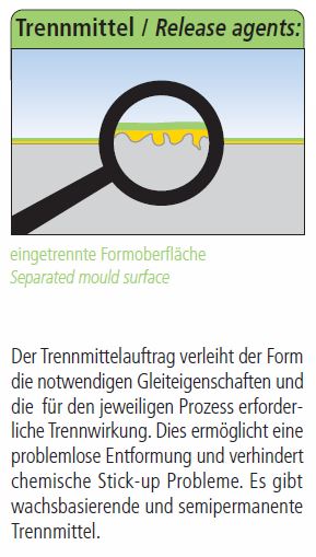 - Durch chemische Verbindung zur Formoberfläsche entsteht kein Übertrag auf gefertigten Teile.